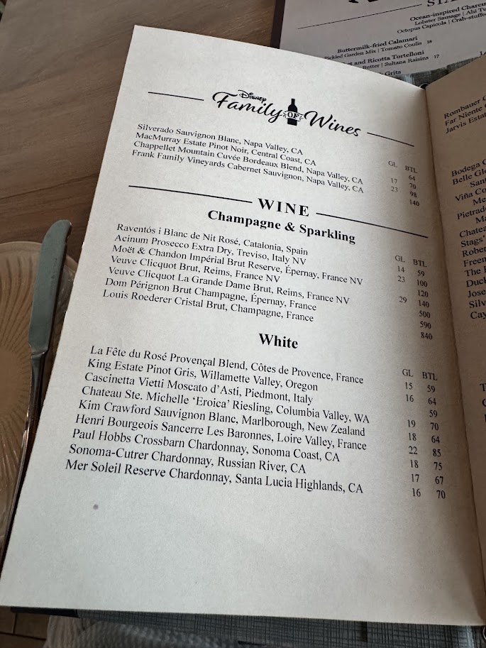 Narcoossee’s is a quaint waterfront sit down fine dining restaurant located at the Grand Floridian Resort that offers seafood and steak and is family friendly.