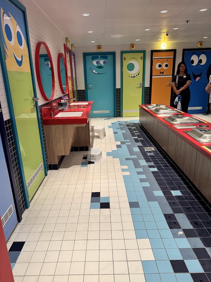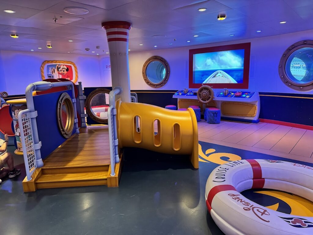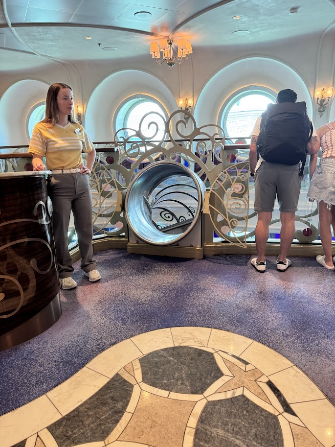 The kids club on the Disney Wish has a unique way of checking in. You can either walk down directly to the kids club OR slide down.