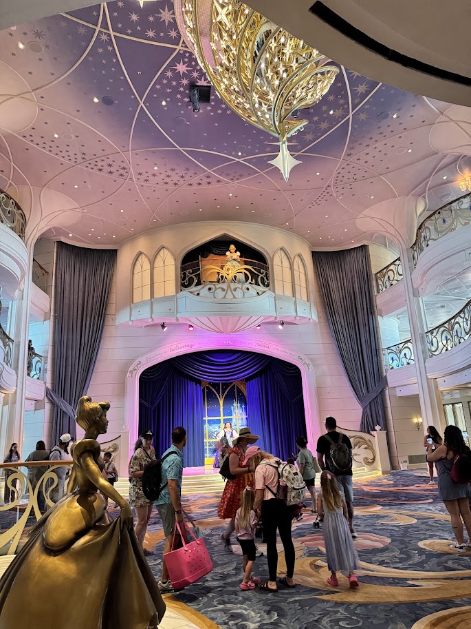 You’ll enter the Grand Hall with a unique Cast Member welcome and a Wish ceremony from Cinderella and guests. You’ll also find a special midnight ceremony at night here unique to the Wish.