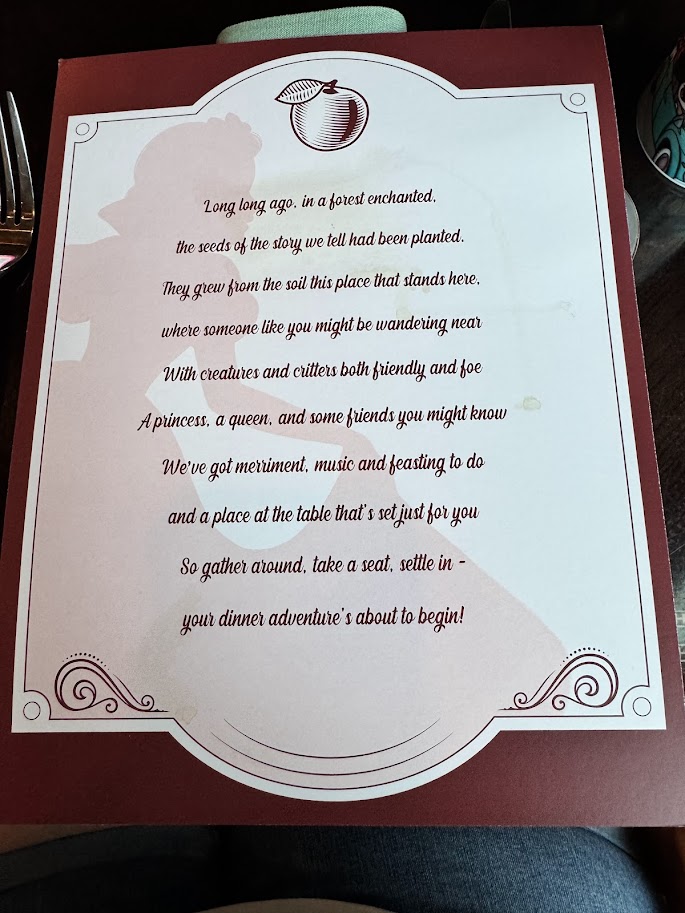 Story Book Dining is a fun interactive dining experience tucked away from the business of the parks. Reservations are recommended and can be made 60 days prior to travel, just let your travel advisor (ME!) know you’d like to add it. Disney dining plans are accepted and there’s also an annual passholder discount.