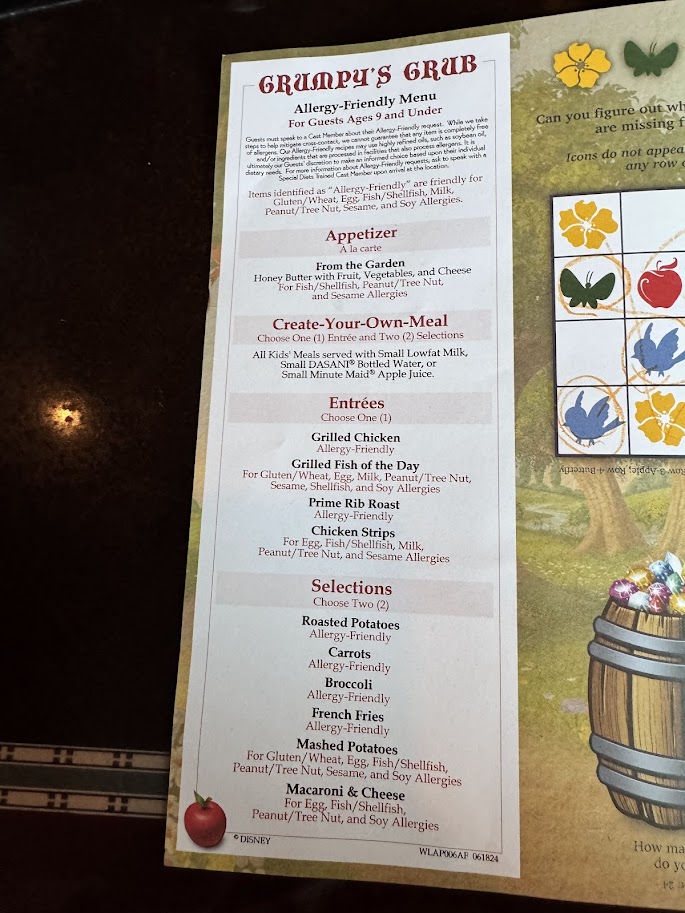 The children’s menu