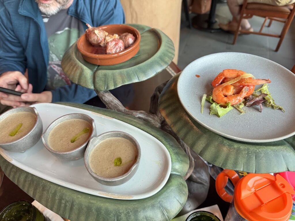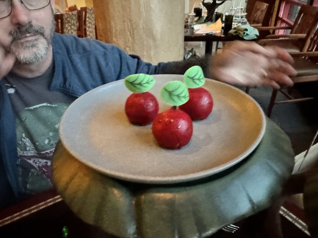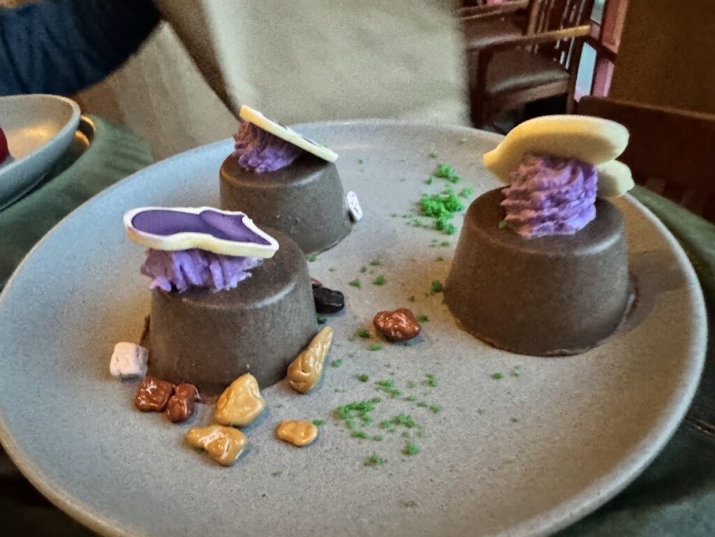 The restaurant has a rustic whimsical theme and it feels like you’re dining in the forest.